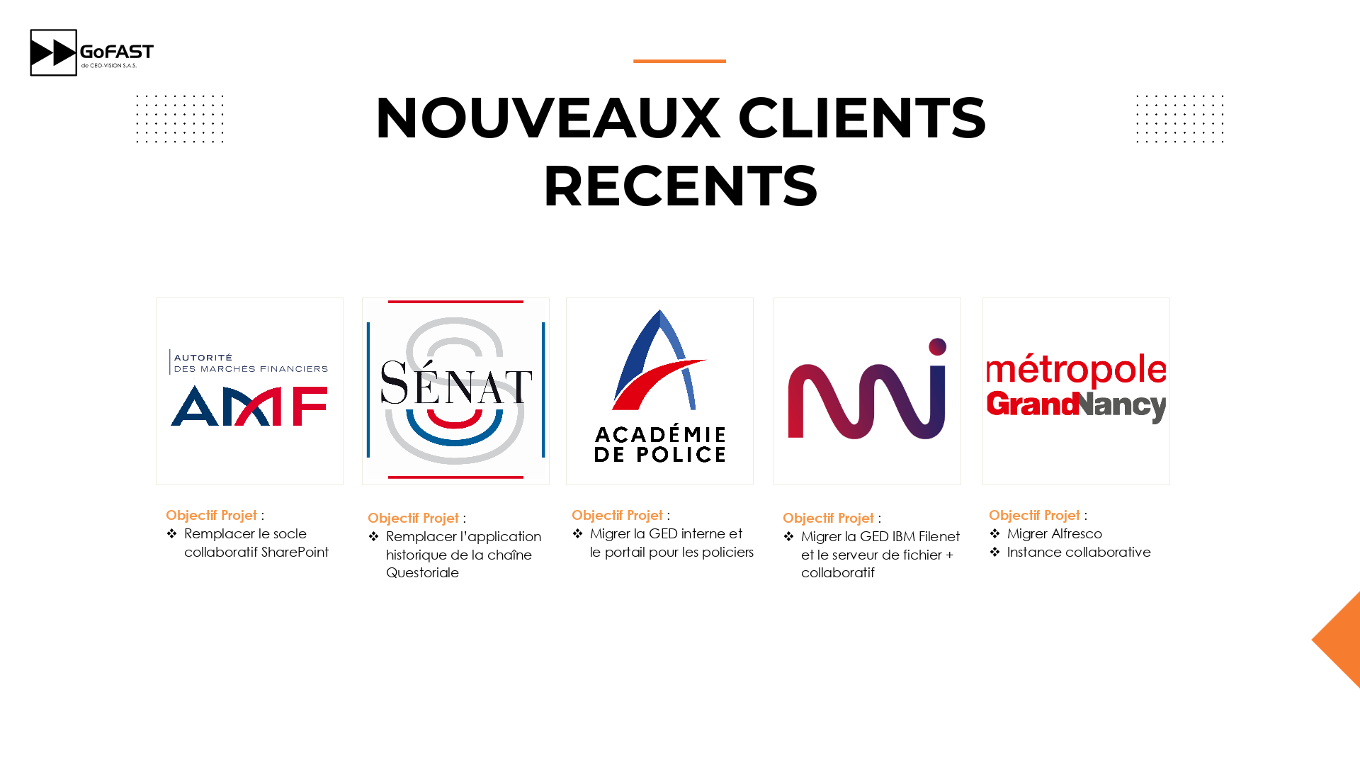 Afin de prioriser les évolutions de GoFAST Digital Workplace GED dans le sens des besoins des utilisateurs, CEO-Vision propose un Club dédié. Sous la forme d’ateliers de retours d’expériences, de démonstrations de cas d’usages et d’actualités, le Club permet aux utilisateurs de se rencontrer pour partager leurs projets et problématiques.
