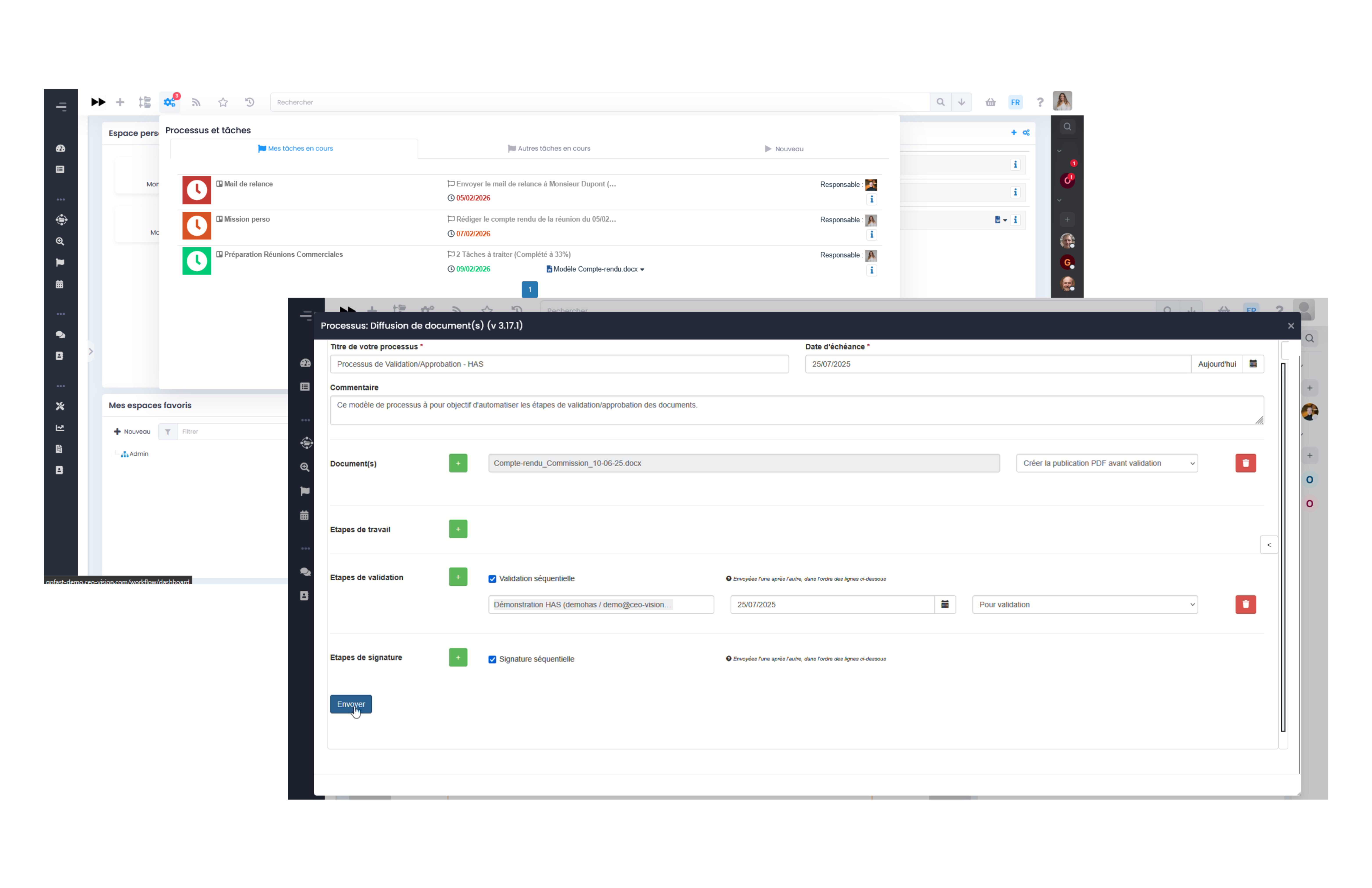 Découvrez toutes les fonctionnalités de GoFAST,  GED, suite collaborative avec OnlyOffice, processus et workflows, messagerie, visioconférence et chat, intégration de l’IA Mistral… et bien d’autres encore.