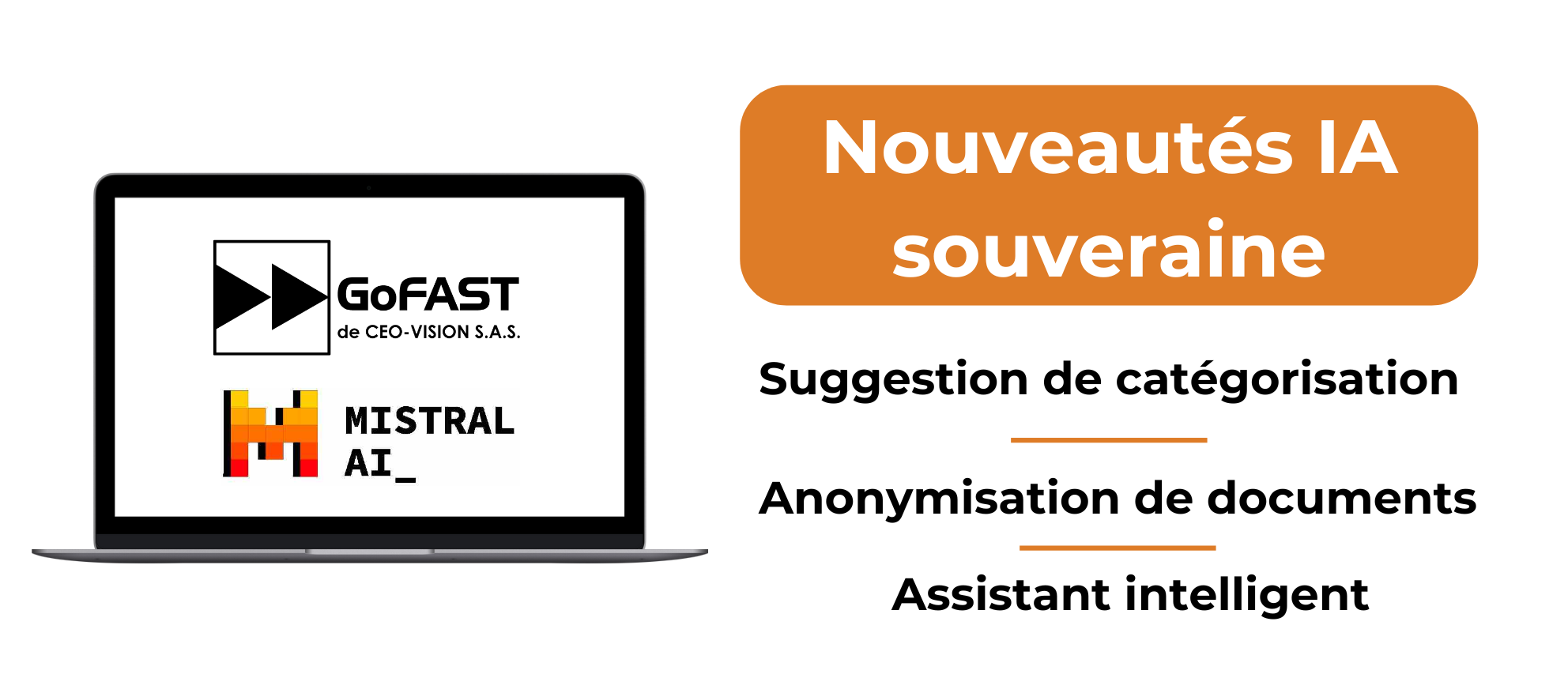 L’IA de GoFAST est basée sur Mistral et est disponible en tant que module optionnel, pouvant être hébergé soit OnPremise, soit en SaaS.