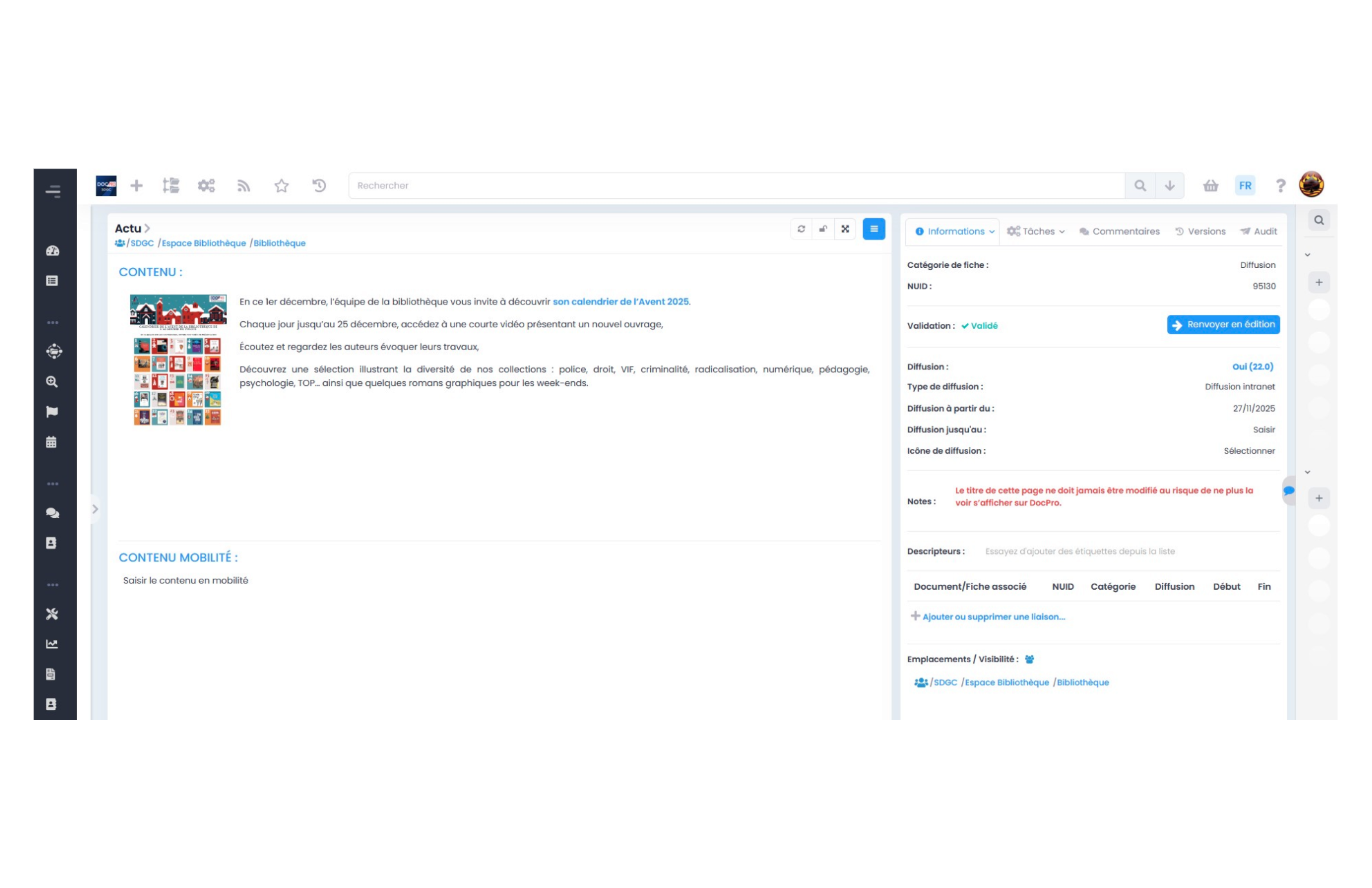 - Notions d’état de publication sur le portail et de workflow d’approbation.